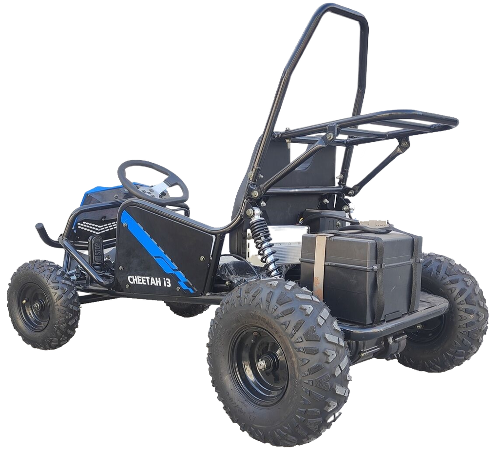 The Trailmaster Cheetah i3 is a premium youth go-kart designed for young riders who want real performance, comfort, and safety on every ride. Powered by a reliable electric motor, the Cheetah i3 delivers smooth acceleration with quiet operation—perfect for backyards, trails, and neighborhood riding. Its adjustable seat, responsive steering, and durable suspension give kids a confident, controlled driving experience.